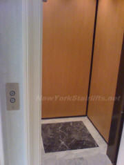 Install of this beautiful home elevator with a classic marble-finish floor |