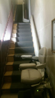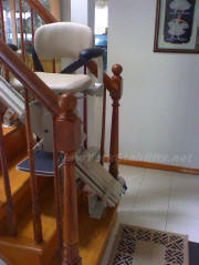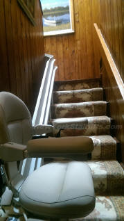 Note the flawless install. Stairlift is parked on the outer-side of the staircase (180-degree parked) |