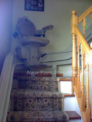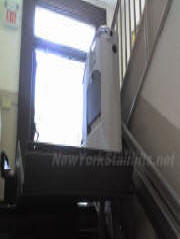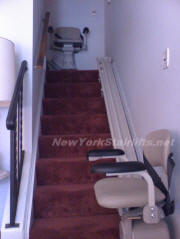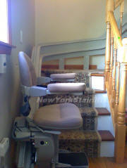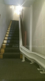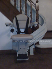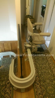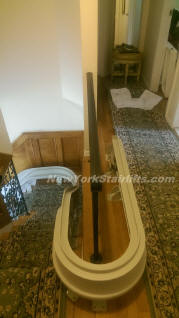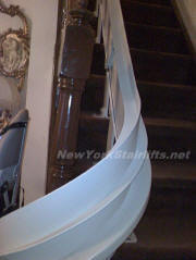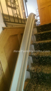 Notice the unique curve in rail, custom designed by NY Stairlift professional installer. |