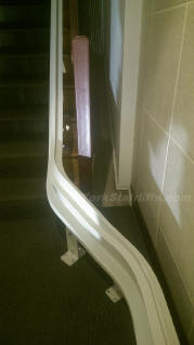 Curved Stairlift, inside rail. Notice how securely the stairlift attaches safely to the track. |