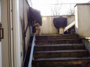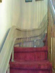 Delicate wooden staircase. The railing hinge is now Up |