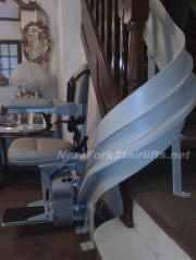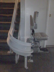 Curved Stairlift. Notice how the gentle curve of the track easily fits the contours of the stairs with safe, rounded surfaces. |