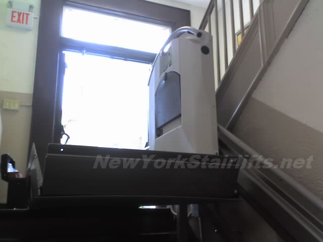 Stairlift at bottom with safety lock engaged |