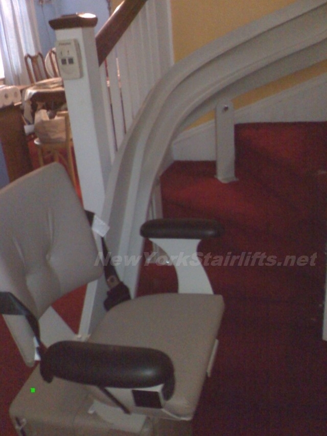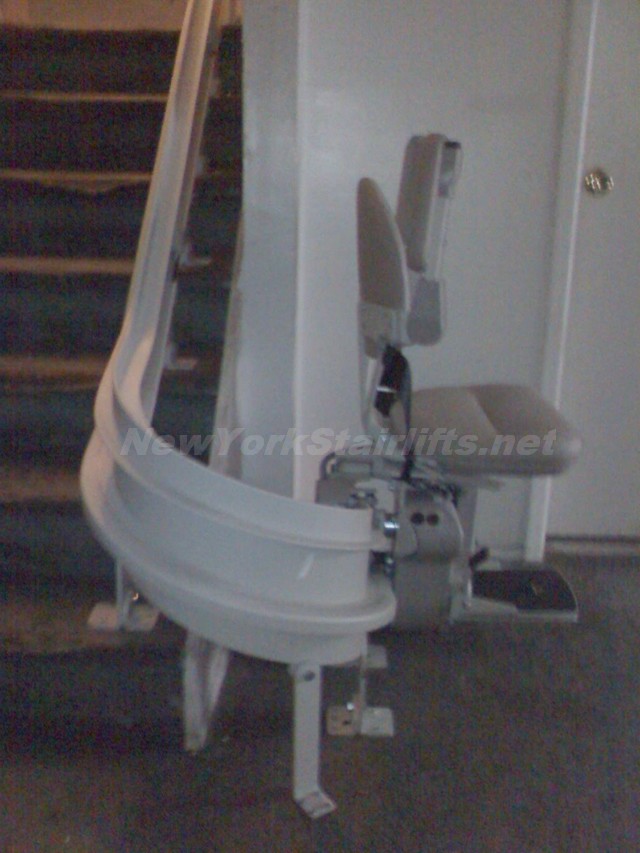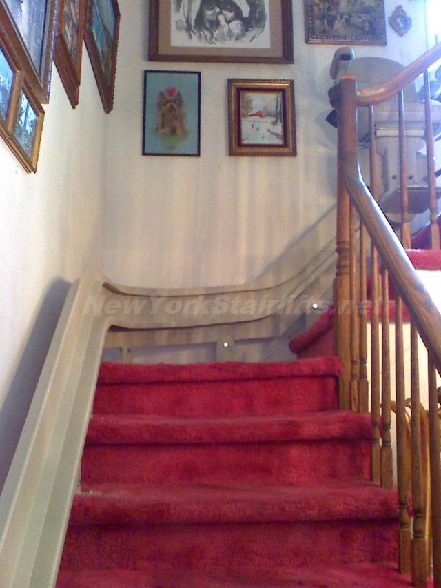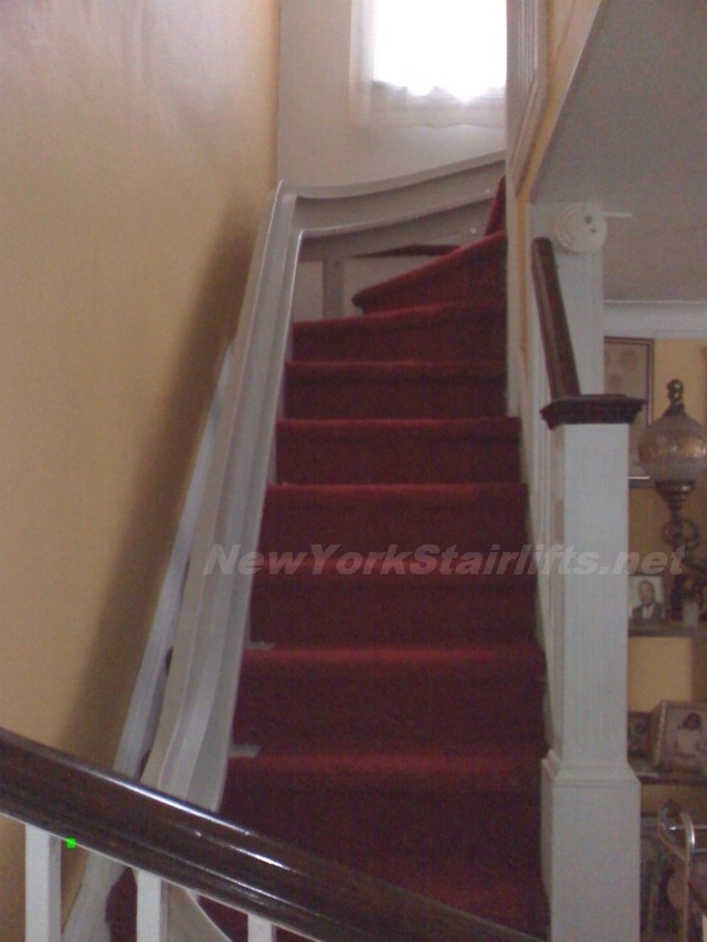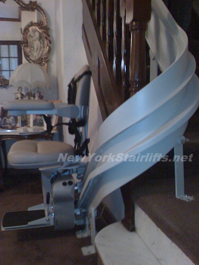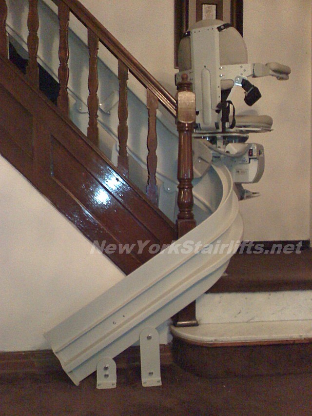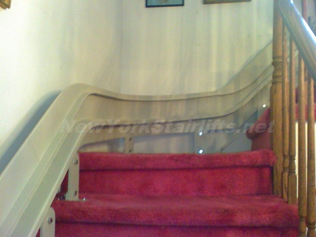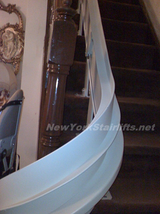 Notice the unique curve in rail, custom designed by NY Stairlift professional installer. |