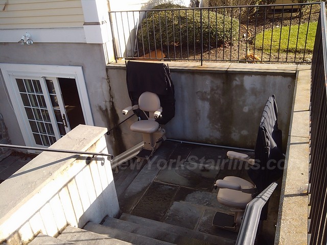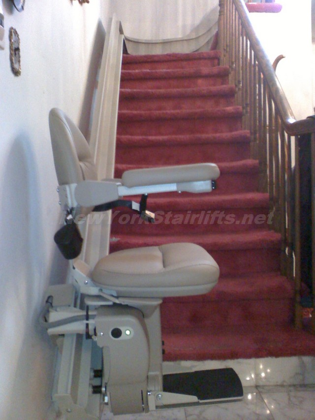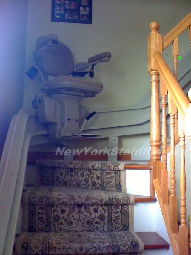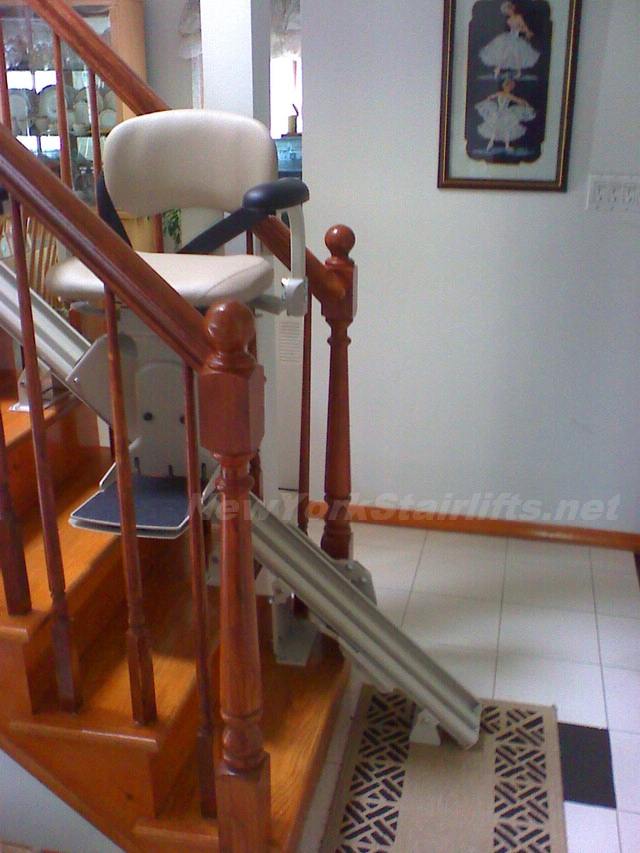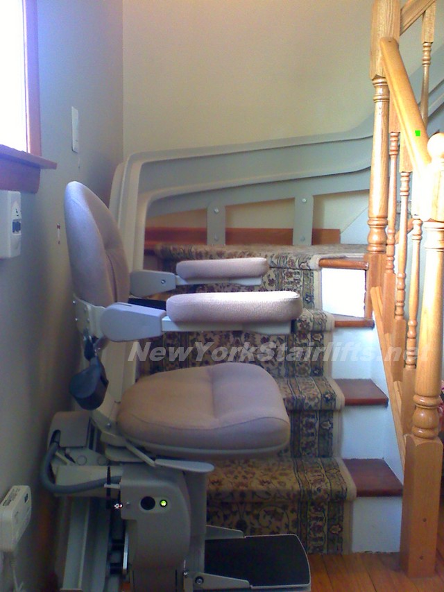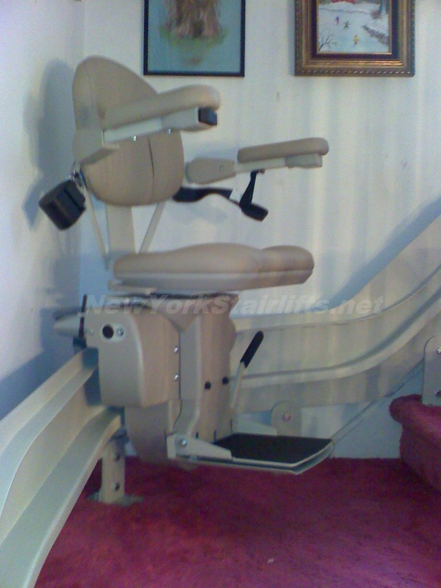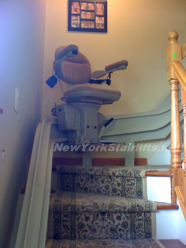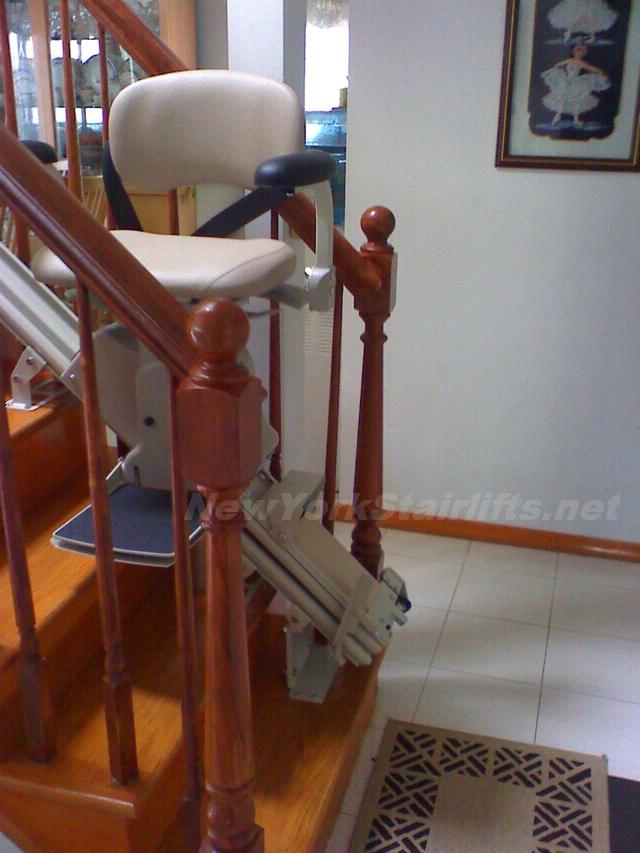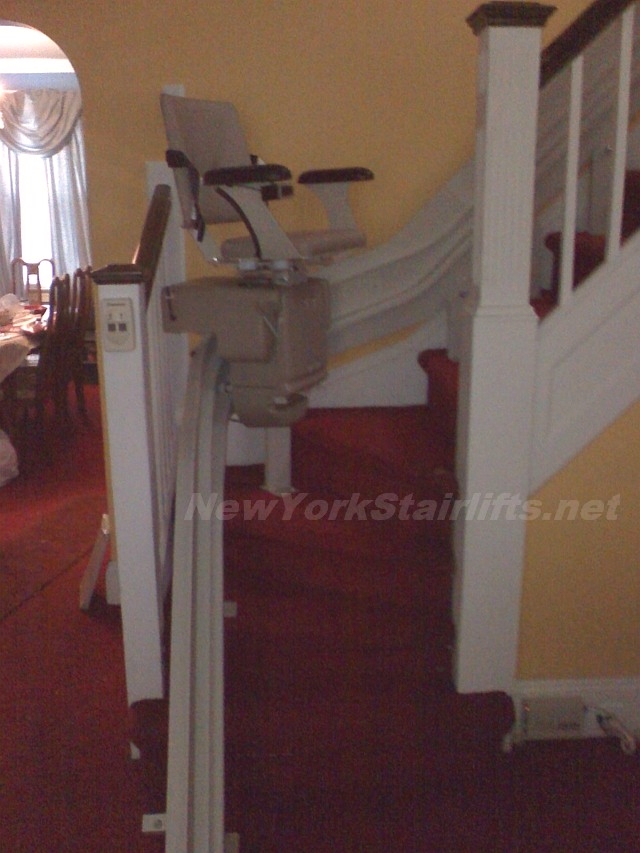 Notice the unique curve in rail, custom designed by NY Stairlift professional installer. |